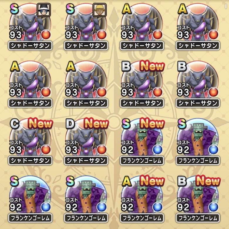 シャドーサタンはコストは大きいけどそもそも優秀だからSがあと2つほしい。Aがひとつ出れば、あとS一つだけ。