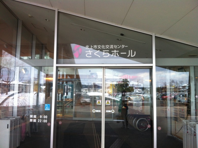 北上市に到着し、文化交流センターであるさくらホールへ。
