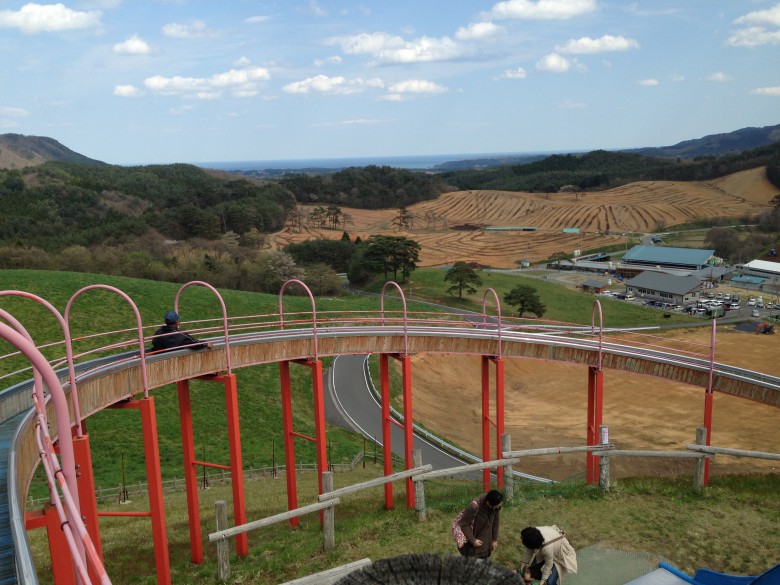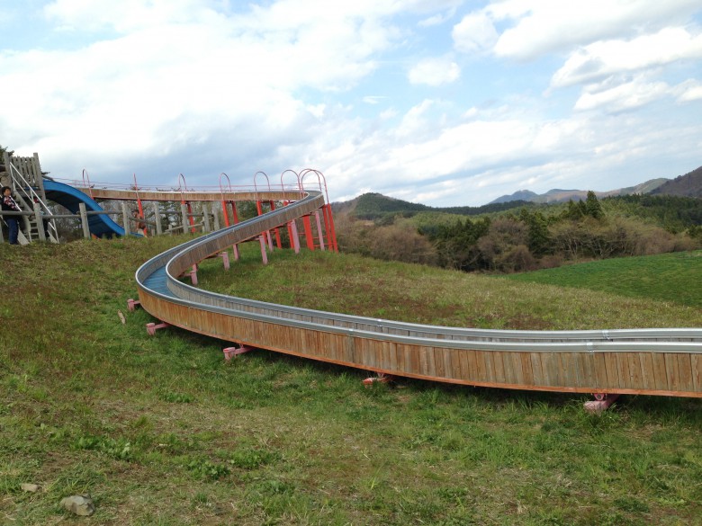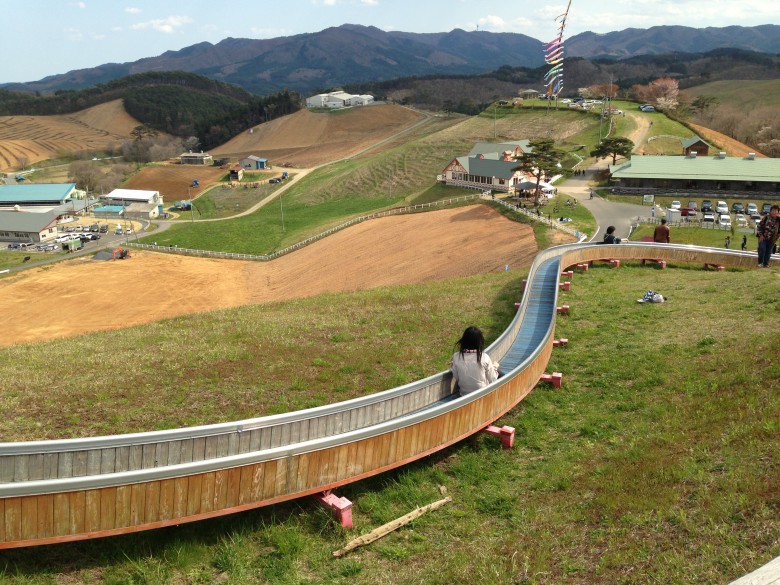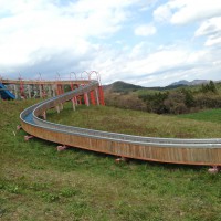 動物とのふれあいコーナーと売店、長ーいローラーすべり台があります。