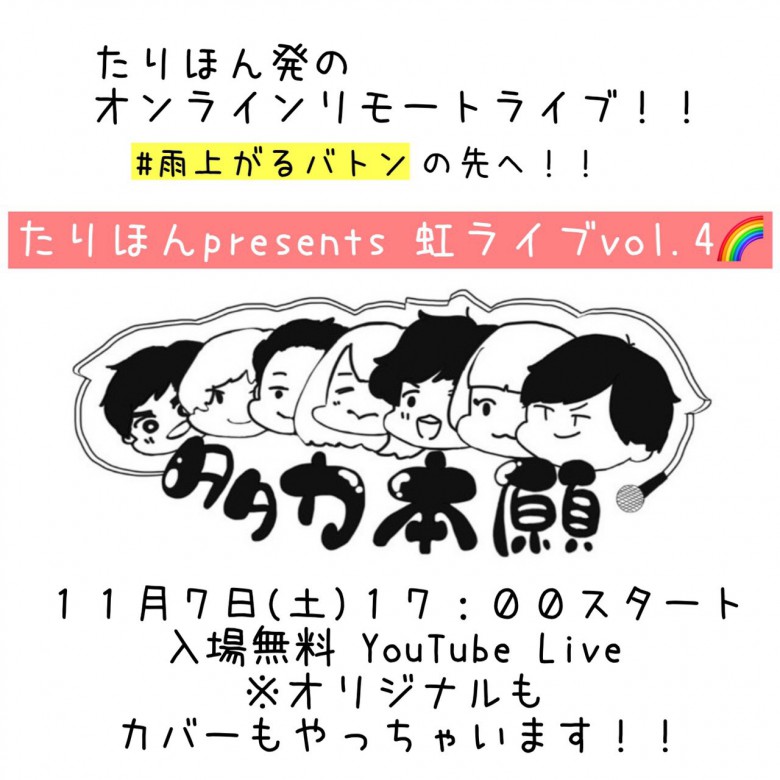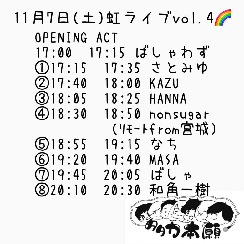 ・虹ライブ(無料配信) 11/7 17:00~