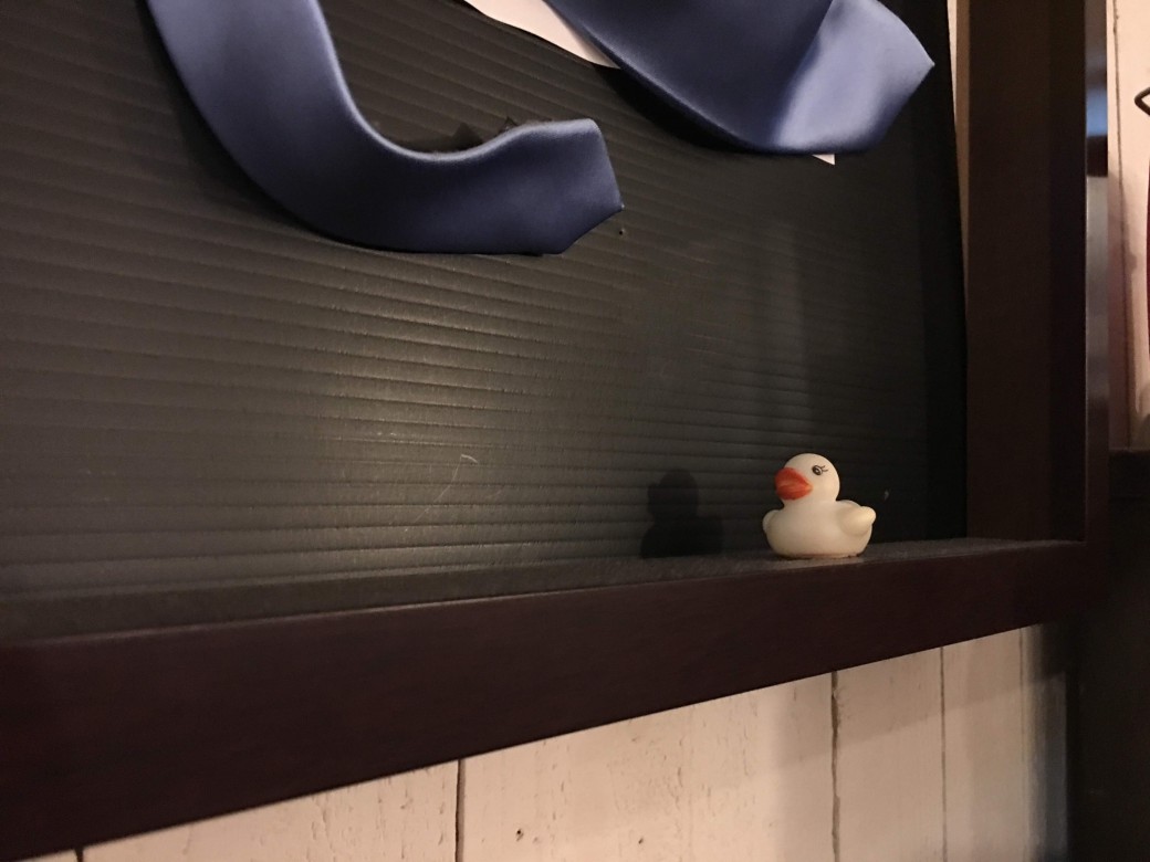 店内にはアヒルがたくさん!実はテーブルのアヒルは呼び鈴がわりにもなるとかならないとか…。